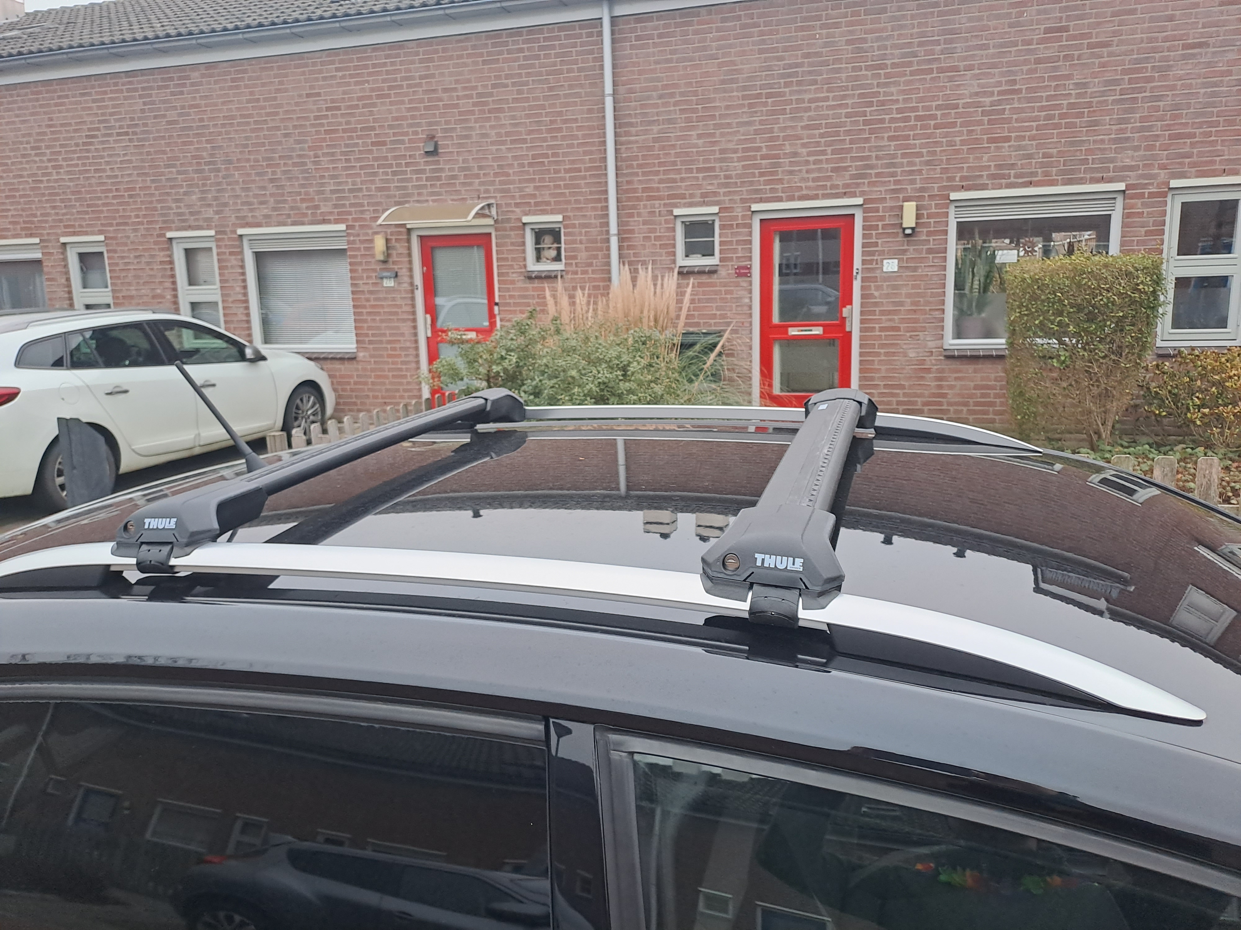En natuurlijk mooi clean zo. En de dak dragers er op. Net ook een thule fietsen drager besteld voor het dak.